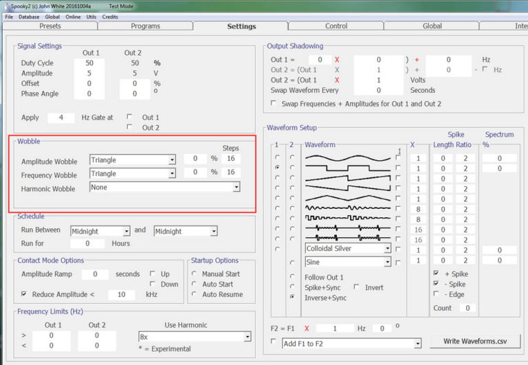 There are 2 kinds of wobble options in Spooky2. One is wobbling for only one frequency. Another is wobbling for all frequencies in a sequence.