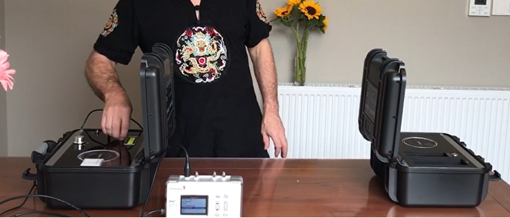 Connect a Spooky2 generator to the Generator port on the Transmitter box. Turn on the generator and tune your Spooky2 Scalar. Sit between the Transmitter and Receiver while programs are running. Spooky2 Scalar accepts any frequency from the massive Spooky2 database.
