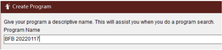 4. If you wish, you can enter text at Program Description. The default description is the time of your scan.